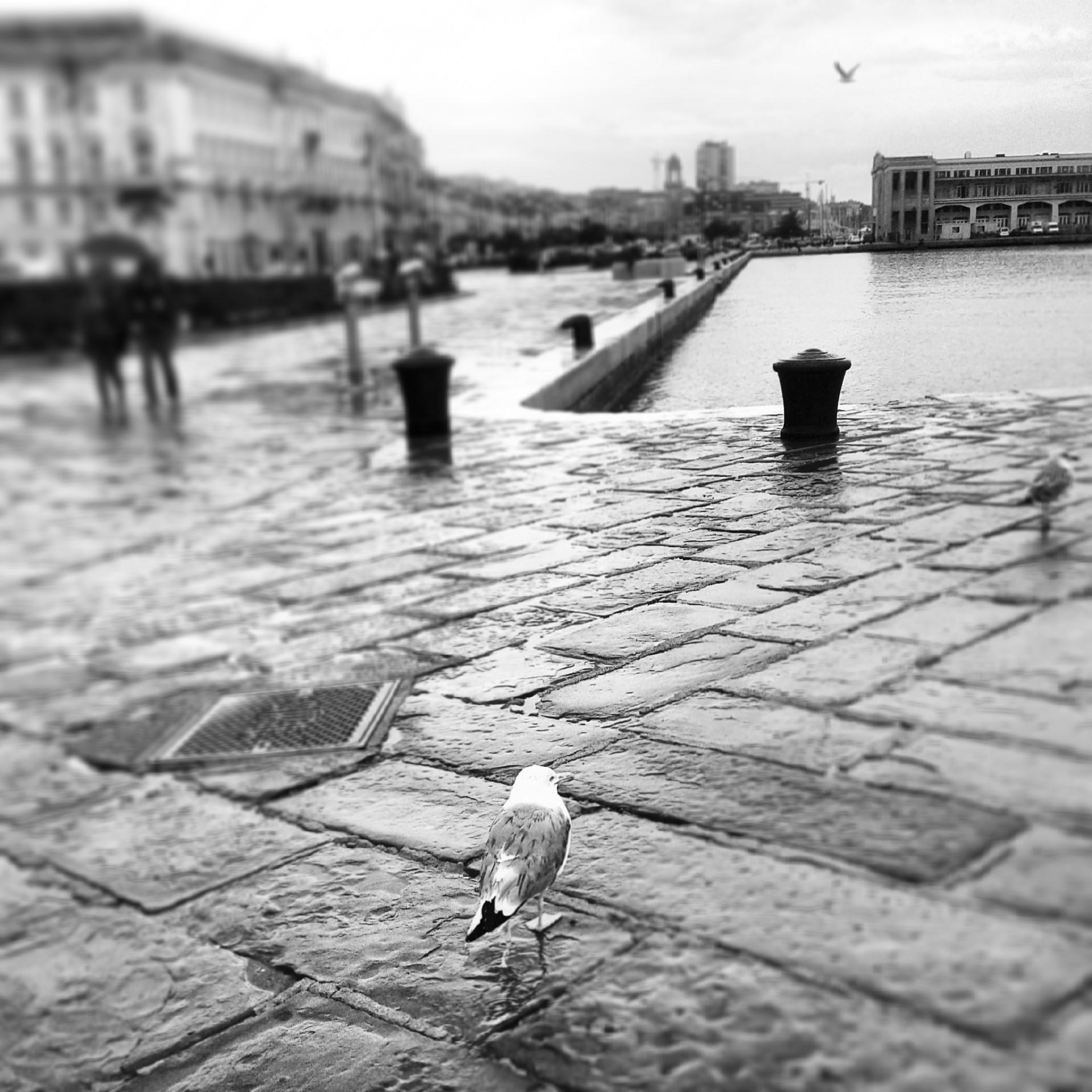 La pioggia esalta il profumo marcio del mare, ne sbiadisce i colori, rende l’atmosfera piatta, calma e – incredibilmente- silenziosa.