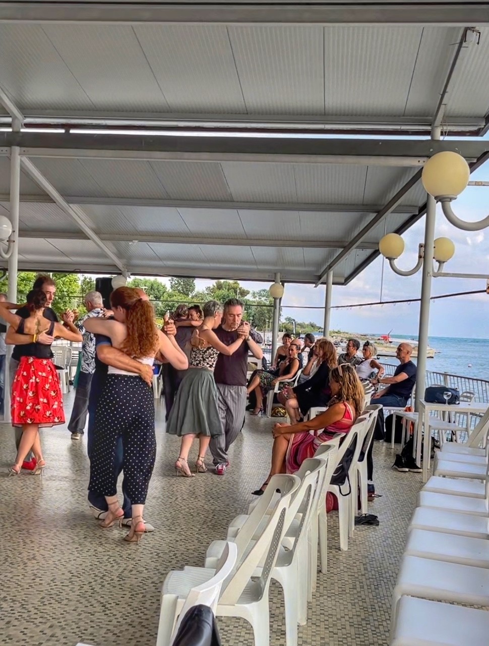 Arrivare in milonga a pomeriggio inoltrato è una strategia ideale che permette agli ospiti di dedicarsi al mare/turismo senza quel retro pensiero di “mi sto perdendo qualcosa la pomeridiana è già iniziata”. E poi, diciamocelo, regala un tempo di recupero utilissimo dalle fatiche del giorno precedente.